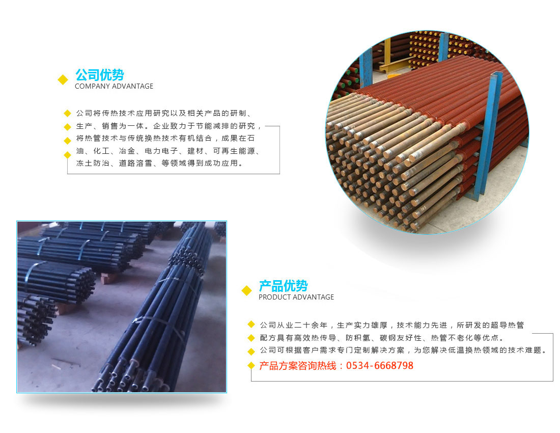 樂陵新華節能設備有限公司位于魯西平原山東省樂陵市,西南距德州市政府駐地110公里,南距省會濟南118公里,北距首都北京328公里,交通便利。公司由多位在工業余熱利用,高效傳熱領 域工作多 年的技術人員組建而成。公司研發的超導熱管配方具有高效熱傳導、防積氫、碳鋼友好性、熱管不老化等優點。我公司可根據 客戶需求專門定制解決方案,為你解決低溫換熱領域的技術難題。